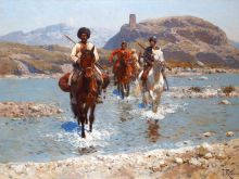 Кавказские всадники у брода |