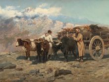 Кавказ. Горцы, переправляющиеся через реку |