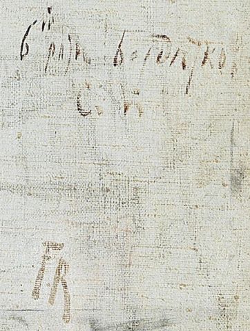 Эскиз «Казак» выполнен маслом на холсте, наклеенном на картон. Размеры: 66 х 43 см. В правом нижнем углу проставлена монограмма автора: «F.R.». В чистом поле правее фигуры казака видна слабо различимая надпись на кириллице, что-то вроде «6-й роты Бе.д.тко. С.И». Происходит из частной коллекции, Австрия.