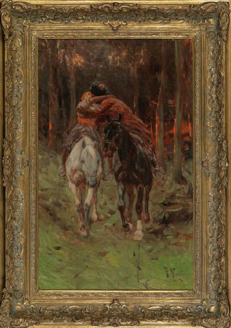 Первая картина, «Поцелуй», происходит из частного собрания Германии. Основные параметры работы: холст, масло; размеры - 63х39 см; внизу справа проставлена подпись художника «F. Roubaud»; в раме. По легенде картина была заказана Францу Рубо в 1925 года, как подарок к бракосочетанию молодой баварской пары. Нынешнему владельцу перешла по наследству.