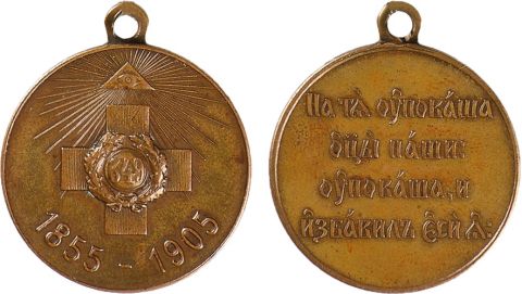 Медаль «В память 50-летия обороны Севастополя», в серебряном исполнении на георгиевской ленте, была учреждена в сентябре 1903 года и вручалась всем живым, на момент награждения, участникам обороны Севастополя в Крымскую войну, а также участникам сражений при Альме, Балаклаве, Инкермане и Чёрной речки. А в декабре 1903 года была учреждена бронзовая медаль на владимирской ленте для награждения членов Комитета по восстановлению памятников Севастопольской обороны и за исторические исследования. Серебряных медалей было отчеканено 9000, а бронзовых, по разным данным, всего от 30 до 50 экземпляров. Именно поэтому последняя, с коллекционной точки зрения, является уникальной и на аукционном рынке, практически, не встречается. Устроители аукциона установили предварительную стоимость лота в 1,6-1,8 миллиона рублей!