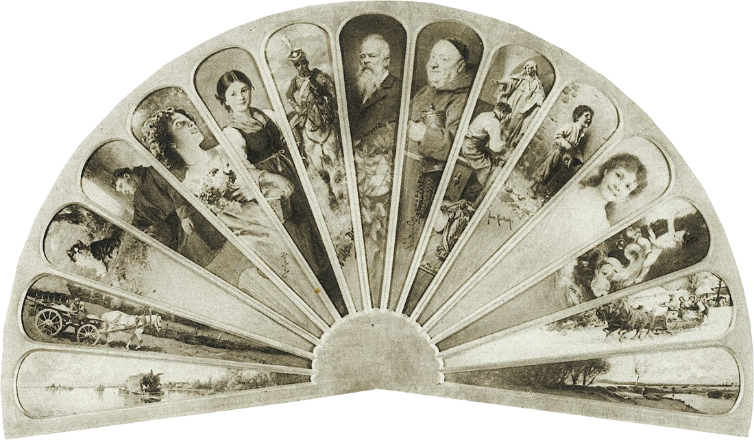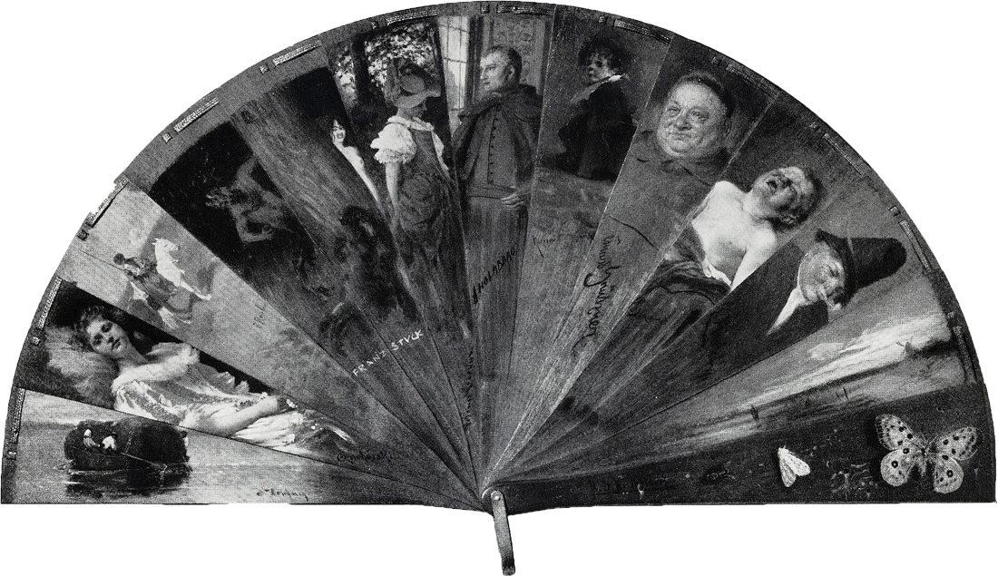 В 1899 году в Мюнхене проходил пресс-фестиваль Пенсионного учреждения немецких журналистов (Pensionsanstalt deutscher Journalisten), своего рода пенсионного фонда для поддержки пожилых и нетрудоспособных немецких журналистов и писателей. Для сбора средств на фестивале организовали благотворительный бал. Свой посильный вклад в это дело внесли и мюнхенские художники: Франц фон Дефреггер, Вильгельм фон Диц, Август Холмберг, Альфред Веруш-Ковальский, Карл Рауп, Герман фон Каульбах и многие другие. Они предложили для продажи специально изготовленный деревянный веер, каждая лопасть которого была расписана рисунками с характерными для каждого художника сюжетами. Под каждым рисунком имелась авторская подпись. Впрочем, этот предмет назвать веером можно было лишь условно, ведь его нельзя было использовать по прямому назначению. Это был предмет искусства, имевший веерообразную (flabellate – лат.) форму. Позже такие благотворительные балы стали происходить часто и для каждого подобного мероприятия мюнхенские художники создавали «художественно раскрашенные веера».