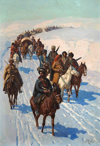 Картина первоначально принадлежала русскому казачьему генералу (Мюнхен). Затем находилась в частной коллекции (Германия). Картина профессионально оформлена. Есть несколько крошечных пятен на верхнем правом краю. Холст немного волнистый по верхнему краю и имеется едва заметная отметка давления в левом верхнем углу. Рама позолочена и имеет несколько следов от сколов. Размер по раме - 115 х 86, размер по внутренней части подрамника - 100 х 70 см.