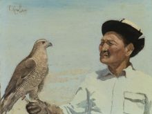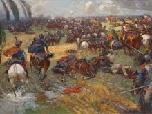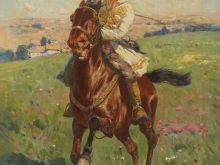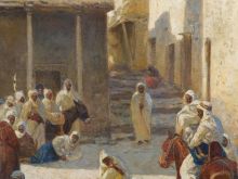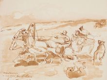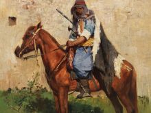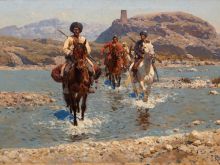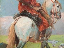 Bewaffnete Tscherkessen geleitet einen Volksstamm