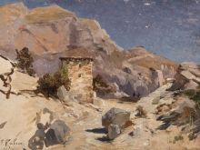 Galoppierendes Pferdegespann mit Schneeschlitten