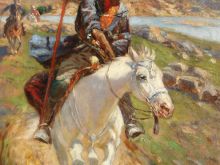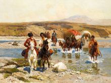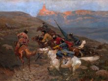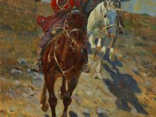 «Соколиная охота», конные гусары в осеннем лесу. |