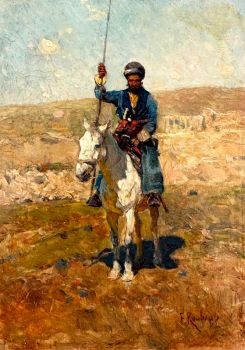 Motiv Reiter zu Pferd, wohl Tscherkesse / Kaukasier.