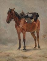 Стоящая лошадь с казачьим седлом