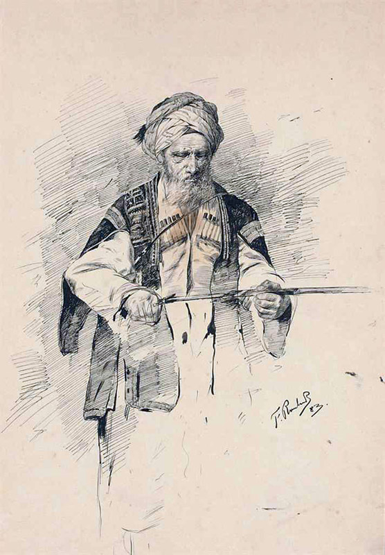 Кавказец чистит шашку