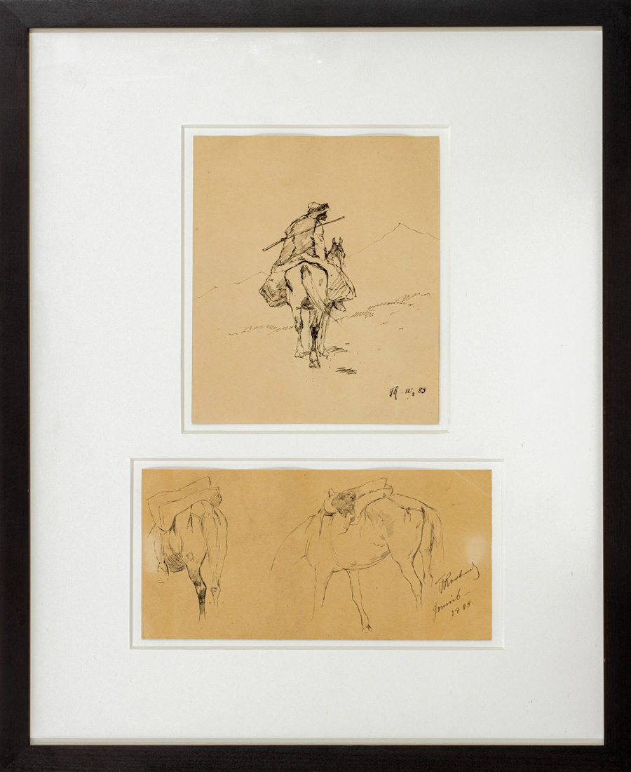 Рисунок выставлен одним лотом с рисунком «Эскиз лошади с седлом» (кат. № 564).