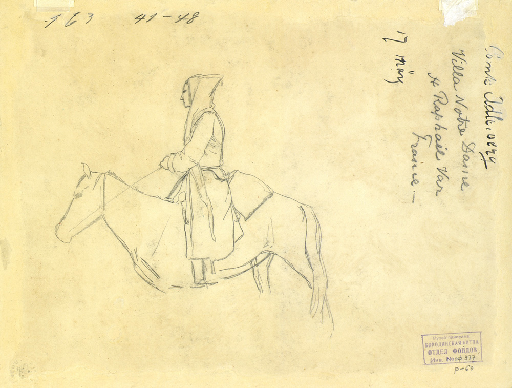 Рисунок горца и надпись: "Comte Adlerberg 16341-48 / Villa Notre Dame A Raphael Var / France"