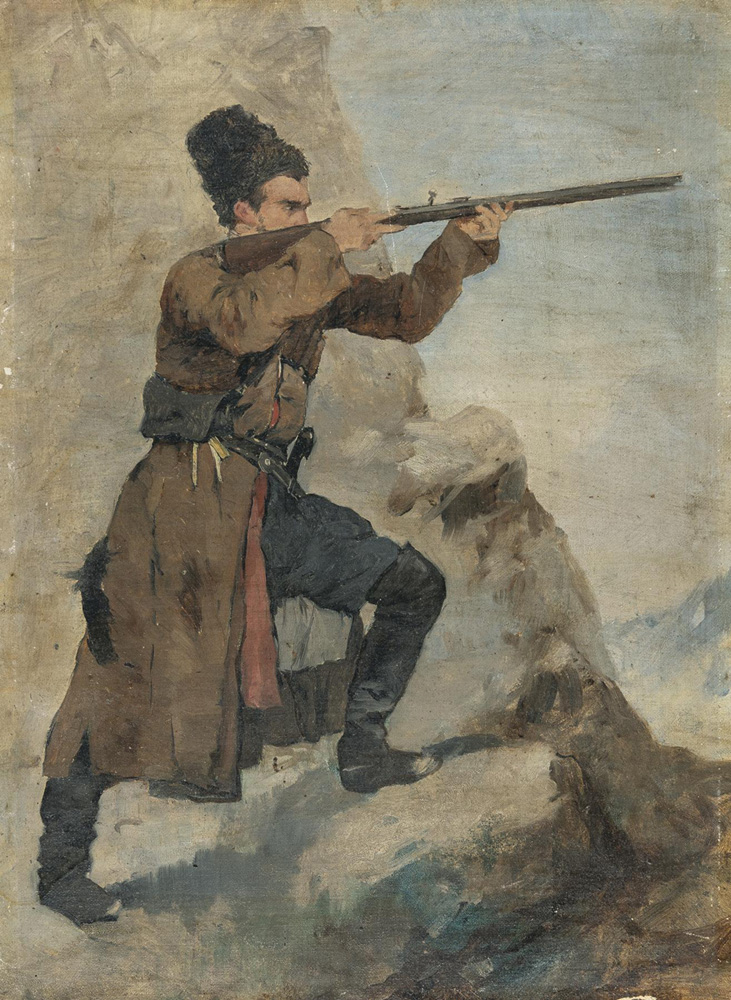 Studie zu einem Kosaken im Gebirge mit Gewehr im Anschlag