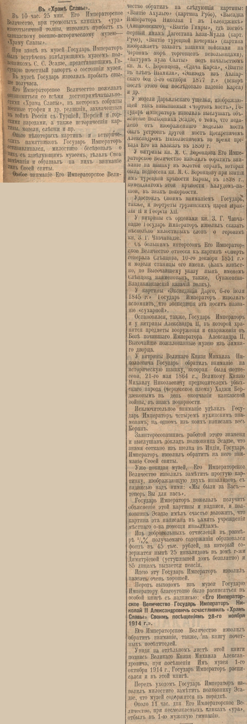 «Кавказ». Газета политическая и литературная. № 271. 29 ноября 1914 года