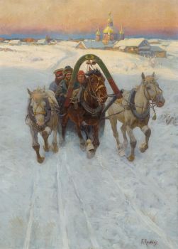 Horse-drawn sleigh in the snow