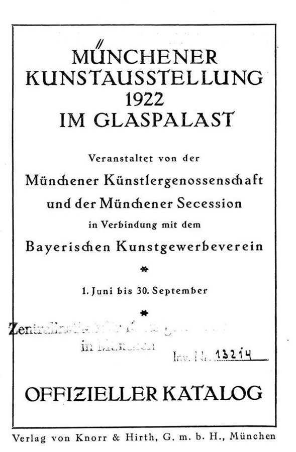 Münchener Kunst-Ausstellung 1922 im Glaspalast. Offizieller Katalog. München, 1922