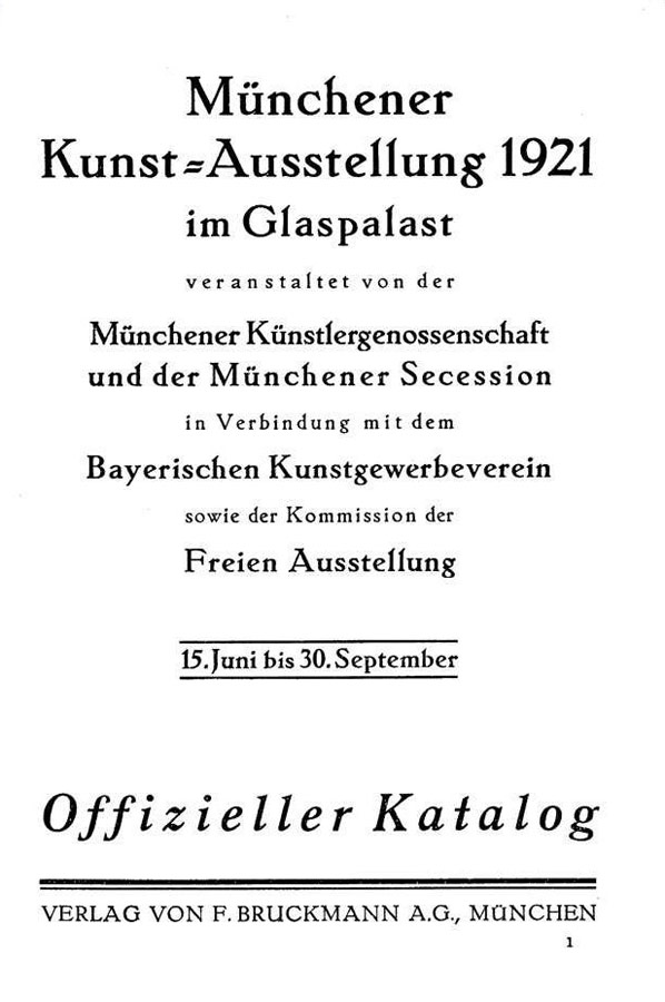 Münchener Kunst-Ausstellung im Glaspalast. Offizieller Katalog. München, 1921