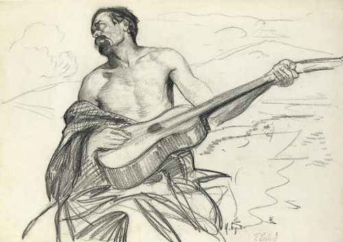 Study of a man with a guitar
