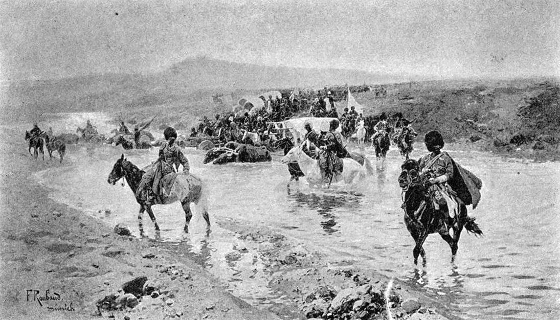 Circassians fording a river with ox-drawn carriages