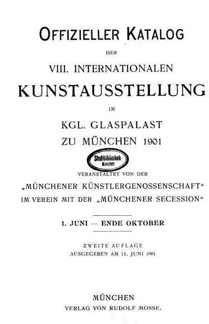 Offizieller Katalog der VIII. Internationalem Kunstausstellung im kgl. Glaspalast zu München. München, 1901
