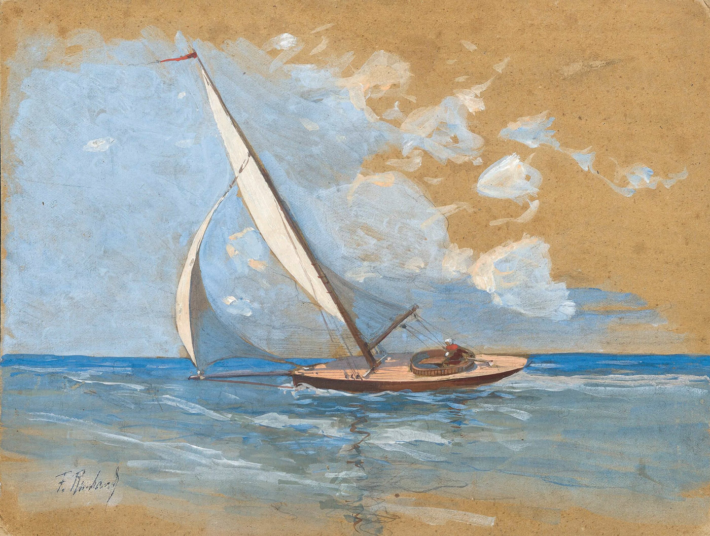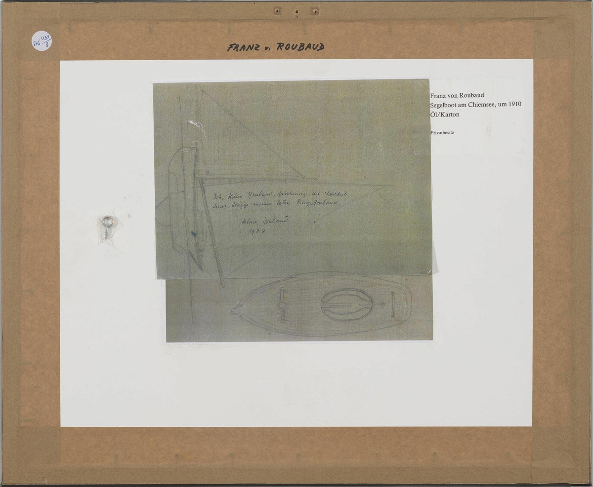 Карандашные наброски лодки и рукописное подтверждение подлинности Элен Рубо, дочери художника, на обороте: Я, Элен Рубо, удостоверяю подлинность | этот эскиз моего отца Франца Рубо. | Элен Рубо | 1977.