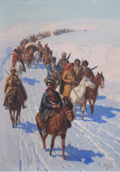 Кавказские войска переходящие через заснеженные горы Кавказа